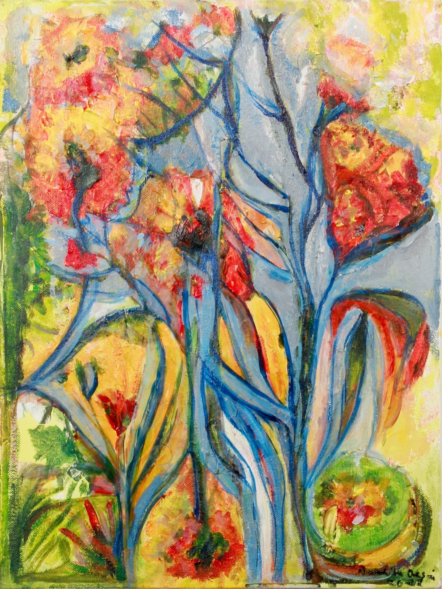 BLUE BLUSH17X21 in | Mixed media acrylic on canvasThis dramatic piece captures the mystery of twilight with bold strokes of blue, layered over soft highlights. A composition that dances between dusk and bloom.