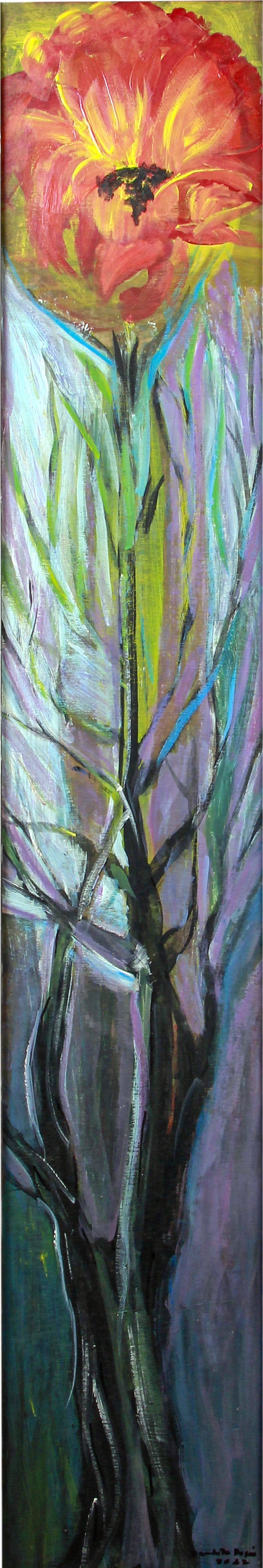 Tall and narrow, this elegant bloom stretches across the canvas like a floral scroll—bold in height and detail.
