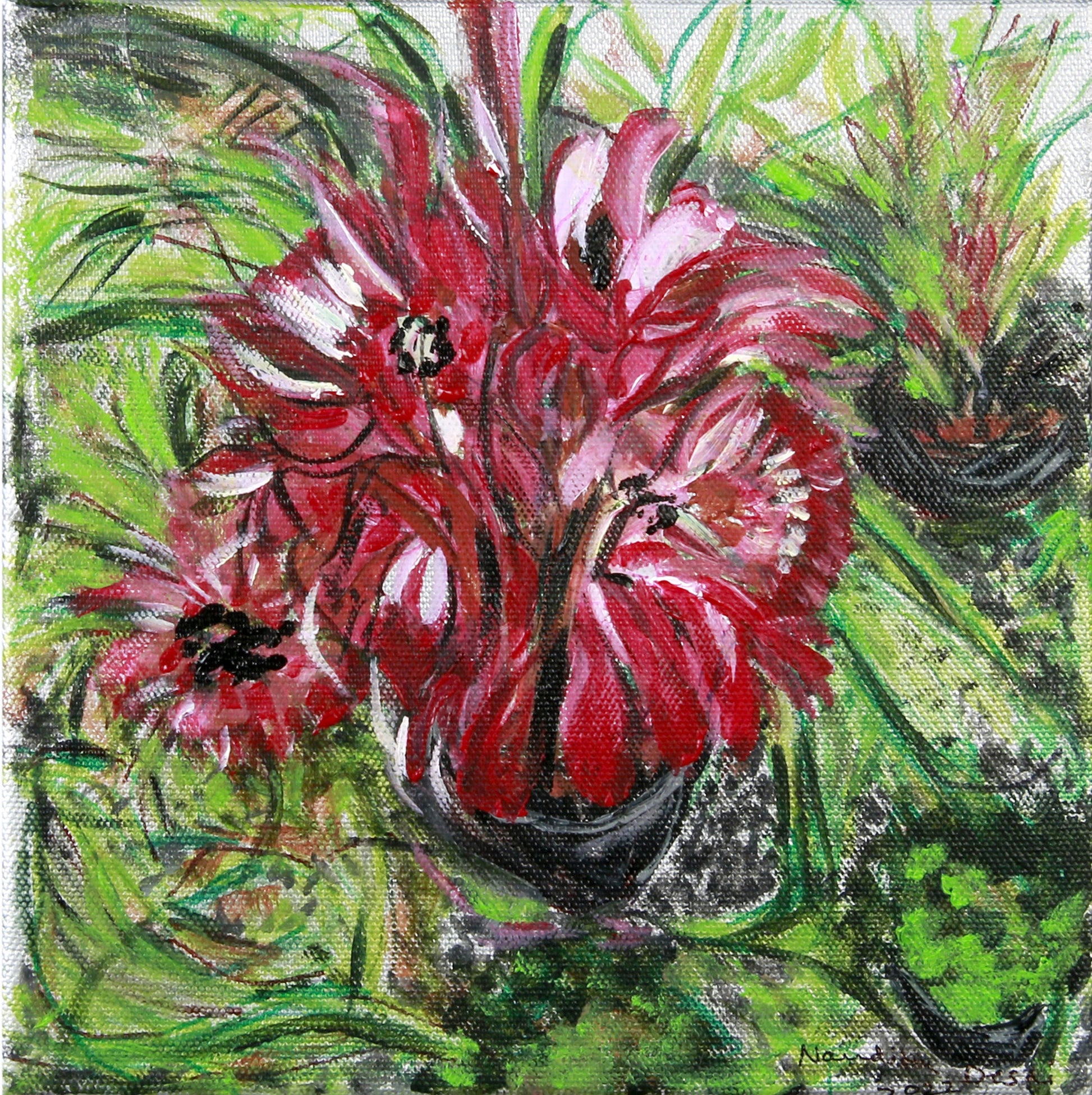 Delicate yet intense, this compact piece radiates the romance and energy of pink in full bloom—perfect for intimate corners and small walls.