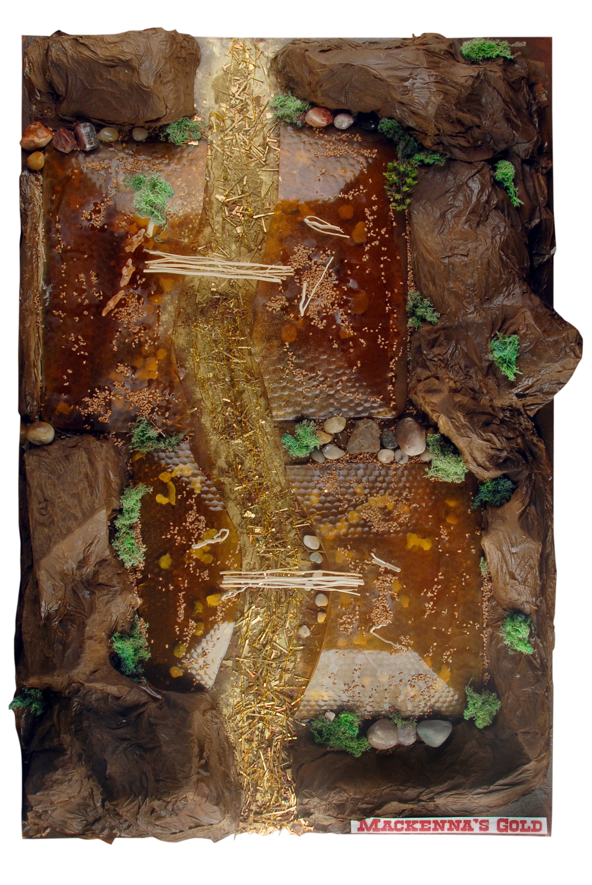 Mackenna’s Gold Size: Unspecified Medium: Mixed media acrylic on canvas Gold‑washed textures fracture and rejoin, recalling maps, deserts, and treasure lore. Light flickers across the surface, shifting as you move. A meditation on allure, value, and the myths we chase.