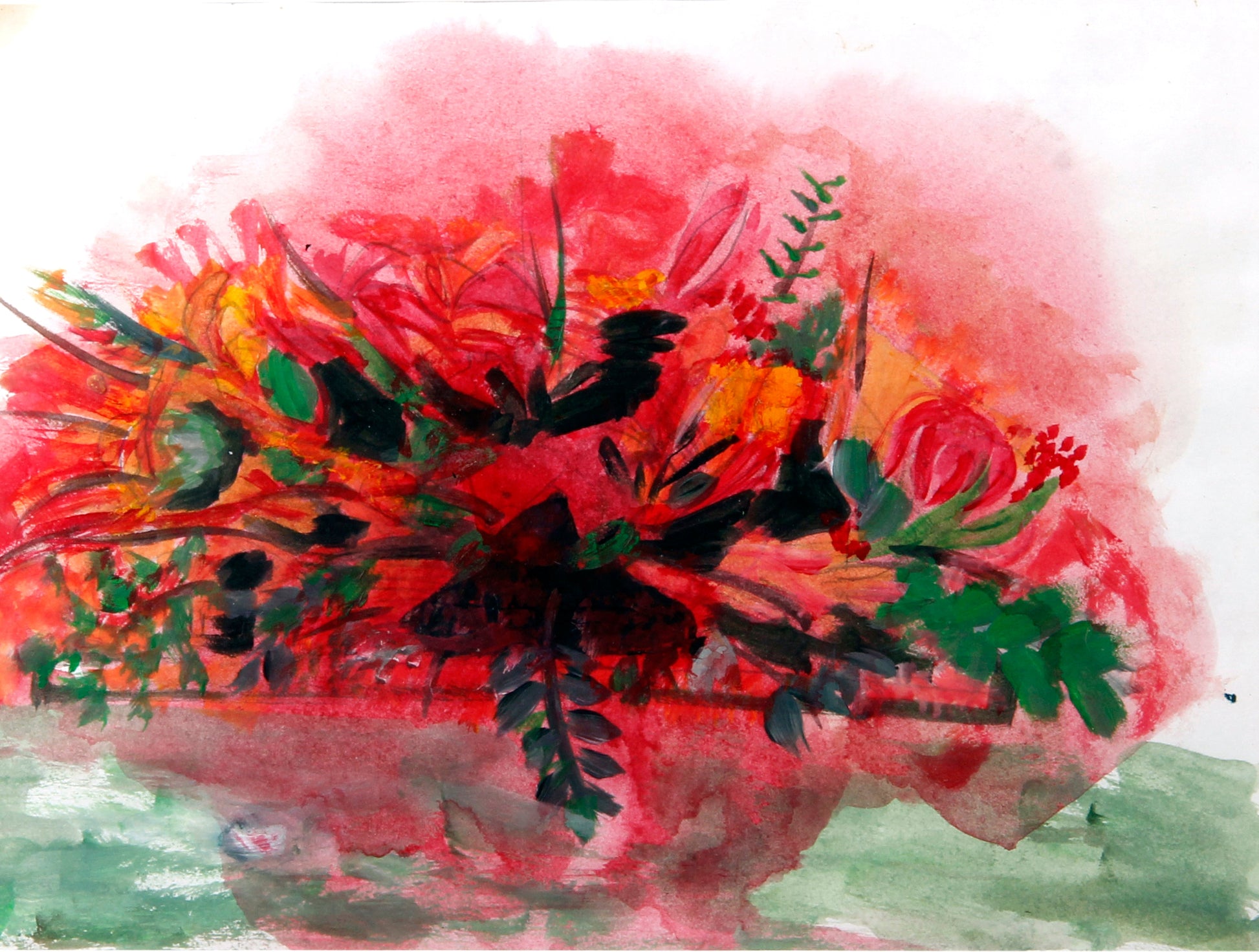 A saturated bouquet blooming with urgency. The expressive brushwork and fierce palette capture a moment of floral emotion—full of energy, drama, and depth.